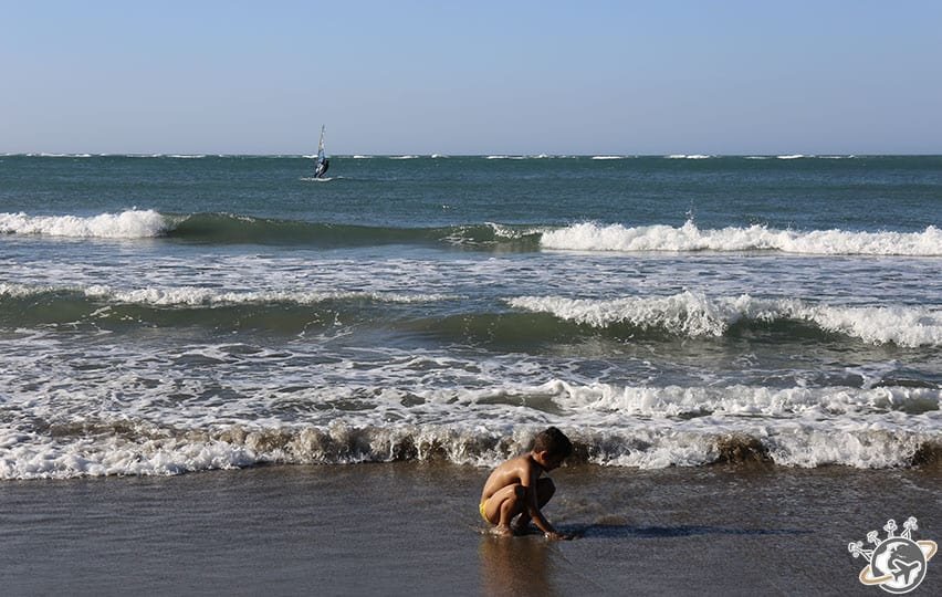 Après les plages désertes de Samanà, nous faisons nos premiers pas à Puerto Plata sur la plage de Cabarete. Truc assez inattendu, nous ne sommes pas seuls. On avait presque perdu l’habitude. Entre les baigneurs, les windsurfers et les kiters, ça fait du monde, enfin, quand je dis monde, la plage est suffisamment grande pour que les gens ne soient pas les uns sur les autres. Mais il y a des bars et des transats, un peu comme à Cannes, en moins guindé et avec beaucoup plus de place 🙂