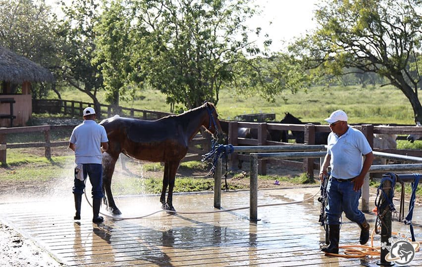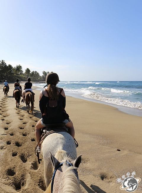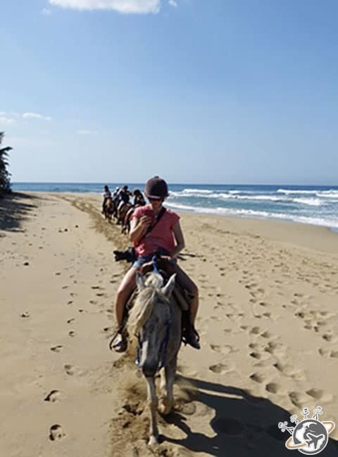 Sur la plage, on peut se reposer, bronzer, lire un livre… ou faire une balade à cheval grâce à Sea Horse Ranch.