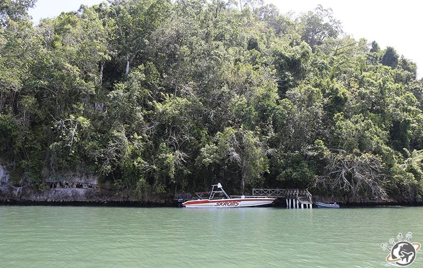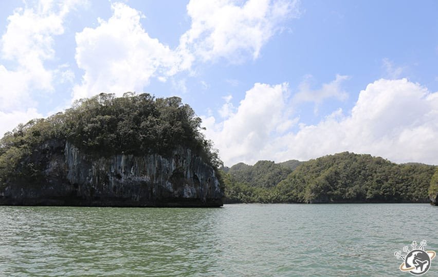 Nous entrons ensuite dans un dédale végétal de 208 km², entre mangrove, végétation luxuriante et grottes (il y en a 135). Les formes des ilots sont parfois surprenantes. Regardez le premier, à gauche, on dirait une dent de requin.
