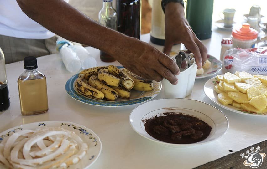 Le guide nous a ensuite préparé une spécialité locale à base de banane, de miel, de cacao, de mamajuana (une sorte de rhum arrangé) et d’épices. J’ai goûté. Le goût de l’alcool était trop fort pour moi donc je m’en suis tenue aux banane et noix de coco natures.