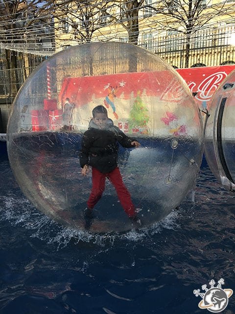 C’est à la fois un marché de Noël et une fête foraine. Les Nains étant plus manèges que vin chaud – en fait moi aussi – nous nous sommes concentrés sur cette partie. Nous avons commencé par le pire train fantôme que j’ai jamais fait. Il promettait des zombies à chaque étage (on était au taquet) et nous n’avons vu que des mauvais automates, aucun humain pour nous effrayer… A 5 € le tour, c’est carrément du vol. Les autres manèges sont entre 3 et 5 €, ne sont pas spectaculaires mais les Nains ont passé un bon moment. Moi j’ai trouvé ça définitivement trop cher pour ce que c’était.