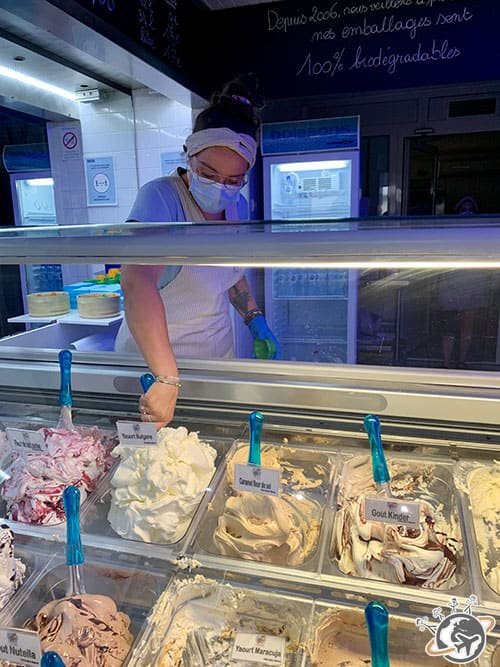 Les glaciers ne manquent pas à Saint-Jean-de-Luz, et même chez Pariès. Il parait que les meilleurs se trouvent chez Bargeton (meilleure glace à la vanille de France en 2019 quand même)… J’ai choisi de goûter les glaces au lait des fermes basques chez Txomin !