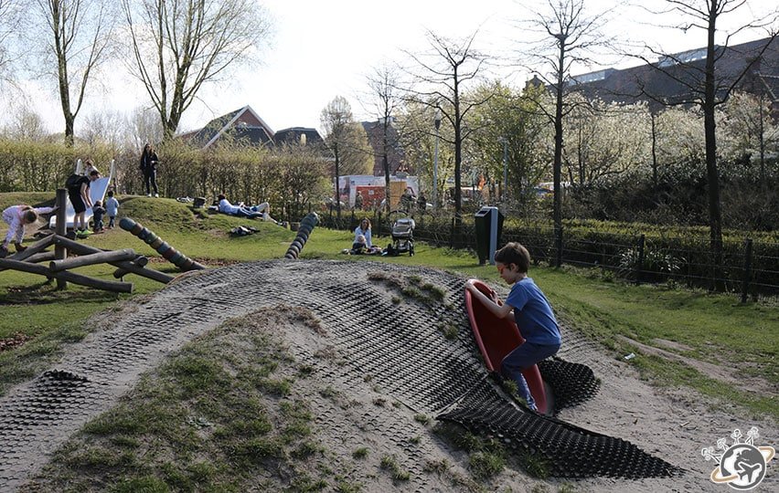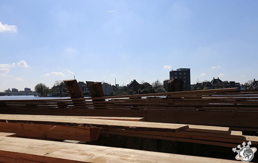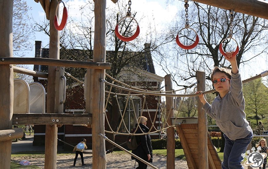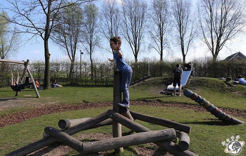 Hier c’était balade sur les canaux sous un ciel gris – mais avec couché de soleil rose -, aujourd’hui ce sera soleil et ciel bleu immaculé. Du coup les Nains réclament un parc pour jouer avant d’aller visiter les moulins du Zaanse Schans. Ce sera Westerpark, un joli parc au nord-ouest de la ville.