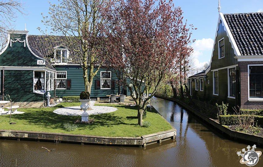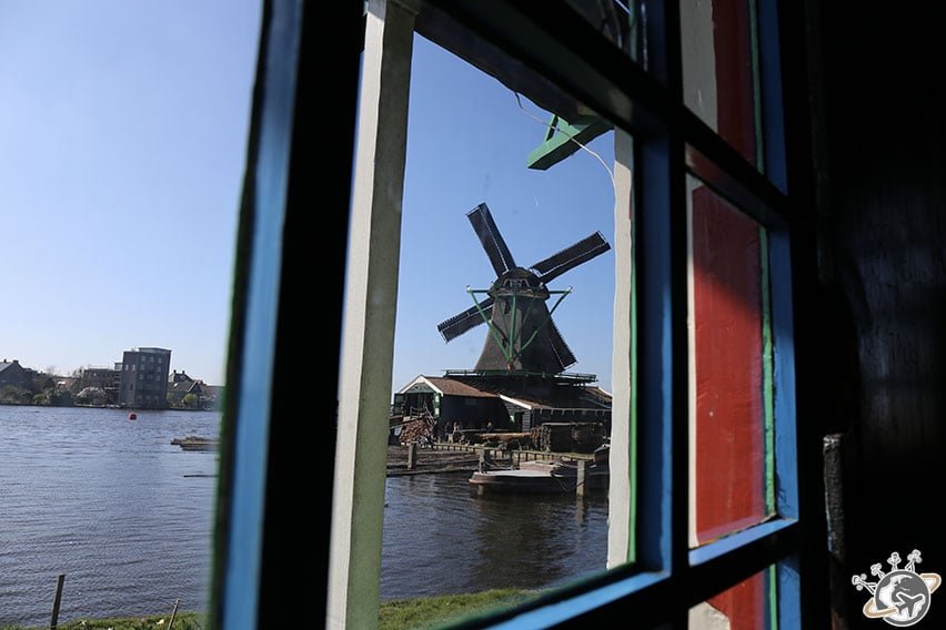 Celui-ci est au milieu de la ville, les autres sont au bord de l’eau. On les aperçoit quelques mètres plus loin, sur le pont qui mène au village du Zaanse Schans. Nous y faisons une première pause photo.