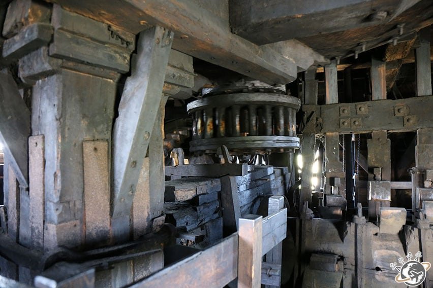 Ce moulin est un survivant : il a été laissé à l’abandon lors de l’arrivée des machines à vapeur, puis réparé, puis ré-abandonné et même déplacé en 1968 pour arriver là où nous sommes.