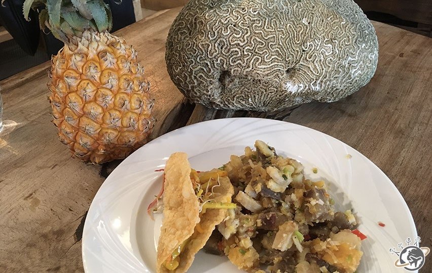 • tacos carottes de Guadeloupe, oignon, mangue et piment végétarien.