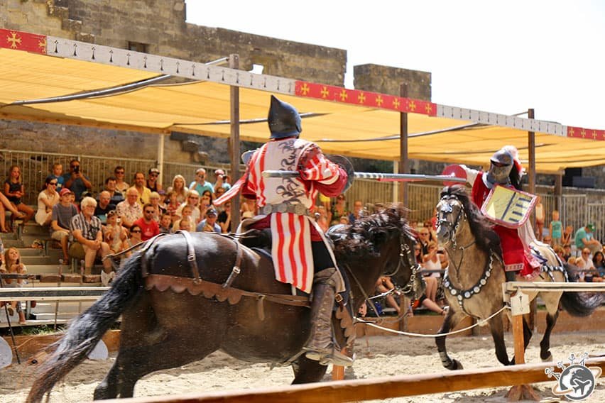 Nous sommes entrés par la Porte Narbonnaise – l’accès y est libre de jour comme de nuit – et avons passé un bon moment à nous balader dans les ruelles avant d’assister à un très chouette spectacle de chevaliers. Les Nains, qui avaient 4,5 et 8,5 ans ont adoré, malgré la chaleur assez écrasante.