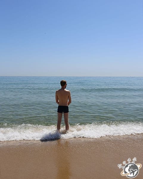 Nous avons quand même fini par y aller, pas longtemps. Le simple fait d’être en maillot sur la plage, les pieds dans l’eau suffisait à notre bonheur.