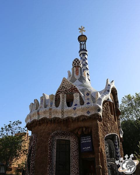 Au pied du dragon/salamandre se trouvent les Pavillons de Conciergerie. Celui de gauche (sur la photo du milieu), que nous avons visité, était le bâtiment de l’administration, celui de droite la maison du gardien. C’est maintenant une boutique et une partie du Musée d’histoire de Barcelone.