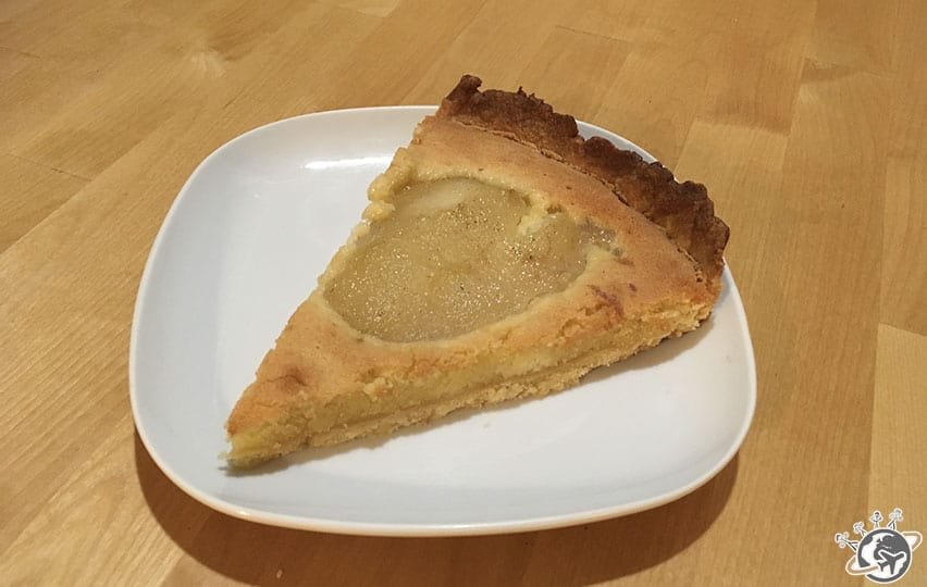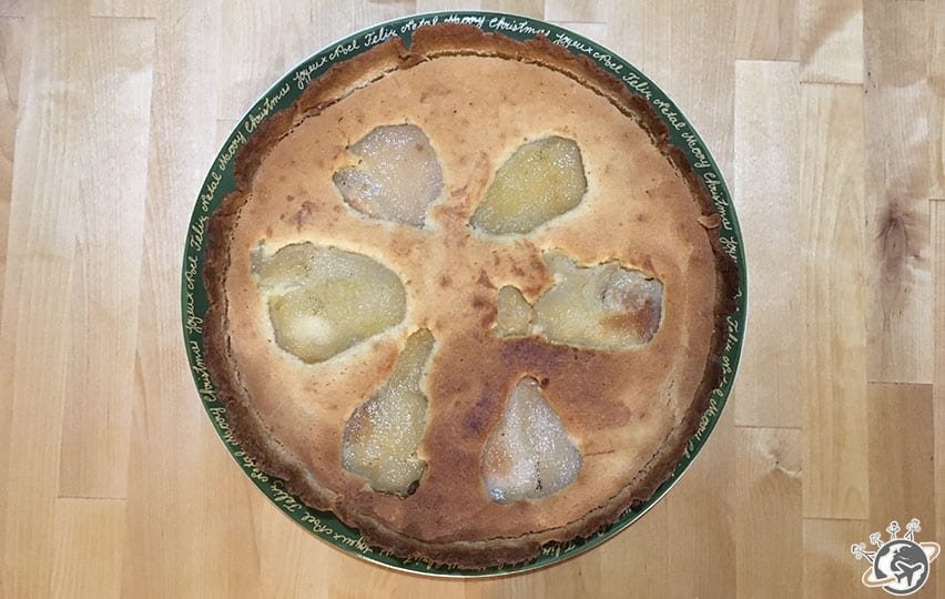 Alors côté salé, j’ai tenté un crumble buterrnut noisette, bof, un peu sec, et côté sucré, en plus des brioches, des muffins et des cookies classiques, je me suis lancée dans un dessert de saison, la tarte amandine aux poires.