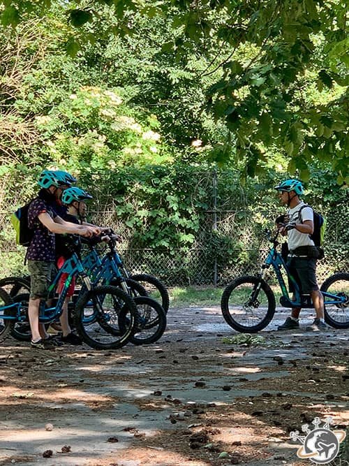 Nous avons donc fait un test avant de partir. Il s’agit d’une prise en main rapide de la trottinette, qui ressemble plus à un vélo en fait, avec la batterie sur le dos (4,5 kg quand même). Pas compliqué pour les grands mais Le Petit n’était pas hyper serein et surtout la batterie était trop lourde pour lui. J’ai vite compris que cela n’irait pas. Visiblement le guide n’a pas vu la même chose que moi car pour lui ça allait et était prêt à partir…