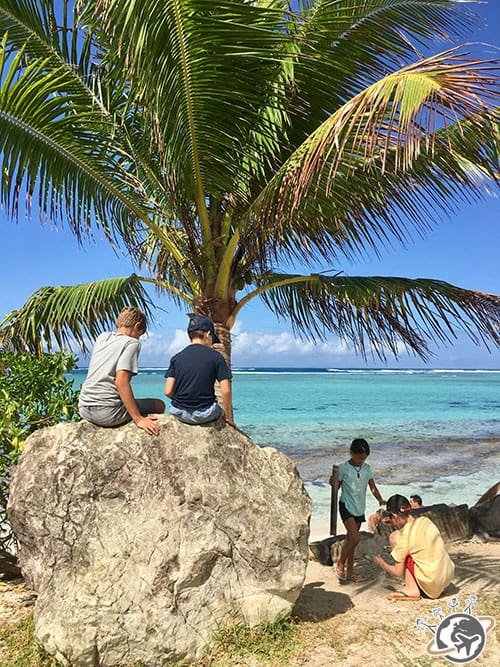 Au sud, vous adorerez Anini à Parea. Ce marae se trouve face à la passe et au très joli motu Araara. Il cache 2 dessins de tortue, ce qui a beaucoup amusé les Nains et leurs copains du jour.
