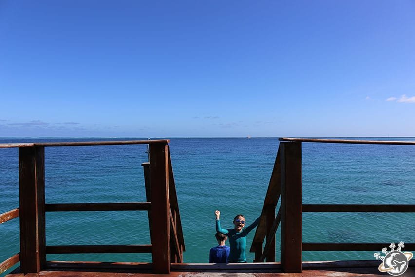 les pilotis ne sont pas fermés donc un petit de 9 mois peut passer en-dessous des barrières ou tomber dans l’escalier donc ce n’est adapté que si vous avez toujours un oeil sur lui. C’est le principe du pilotis, l’accès à la mer est vraiment direct.