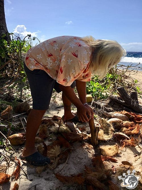 Mãnunu est à côté de la piste de l’aérodrome et d’une plage sauvage avec plein de cocos (chouette un nouveau cours d’ouverture de coco après celui de Moorea).