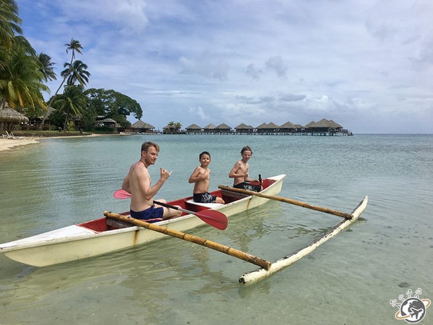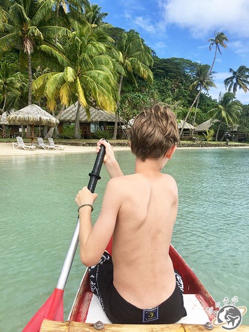 - s’initier à la pirogue polynésienne en famille, ou seule (plus difficile qu’il n’y parait… je tournais en rond) et au canoë (beaucoup plus simple),