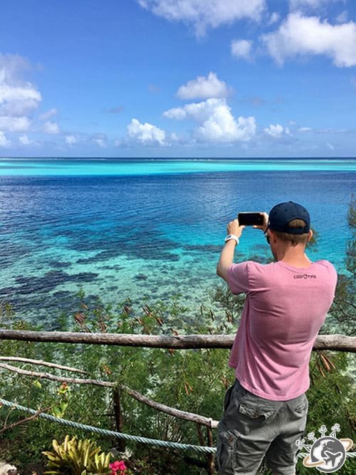 On enchaine avec le bleu et le turquoise, au belvédère face à la baie de Mahuti.