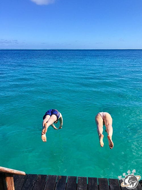 - chiller, faire des devoirs de vacances et sauter de notre ponton privé dès le réveil,