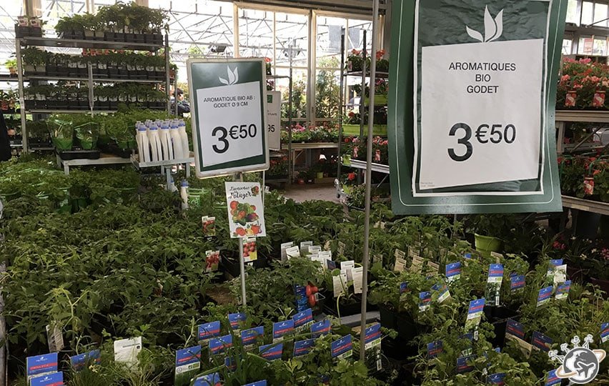 - 40 l terre bio (bon d’abord on a pris un fertilisant, heureusement qu’un monsieur en vert nous a dit que ce n’était pas ce qu’il fallait prendre)