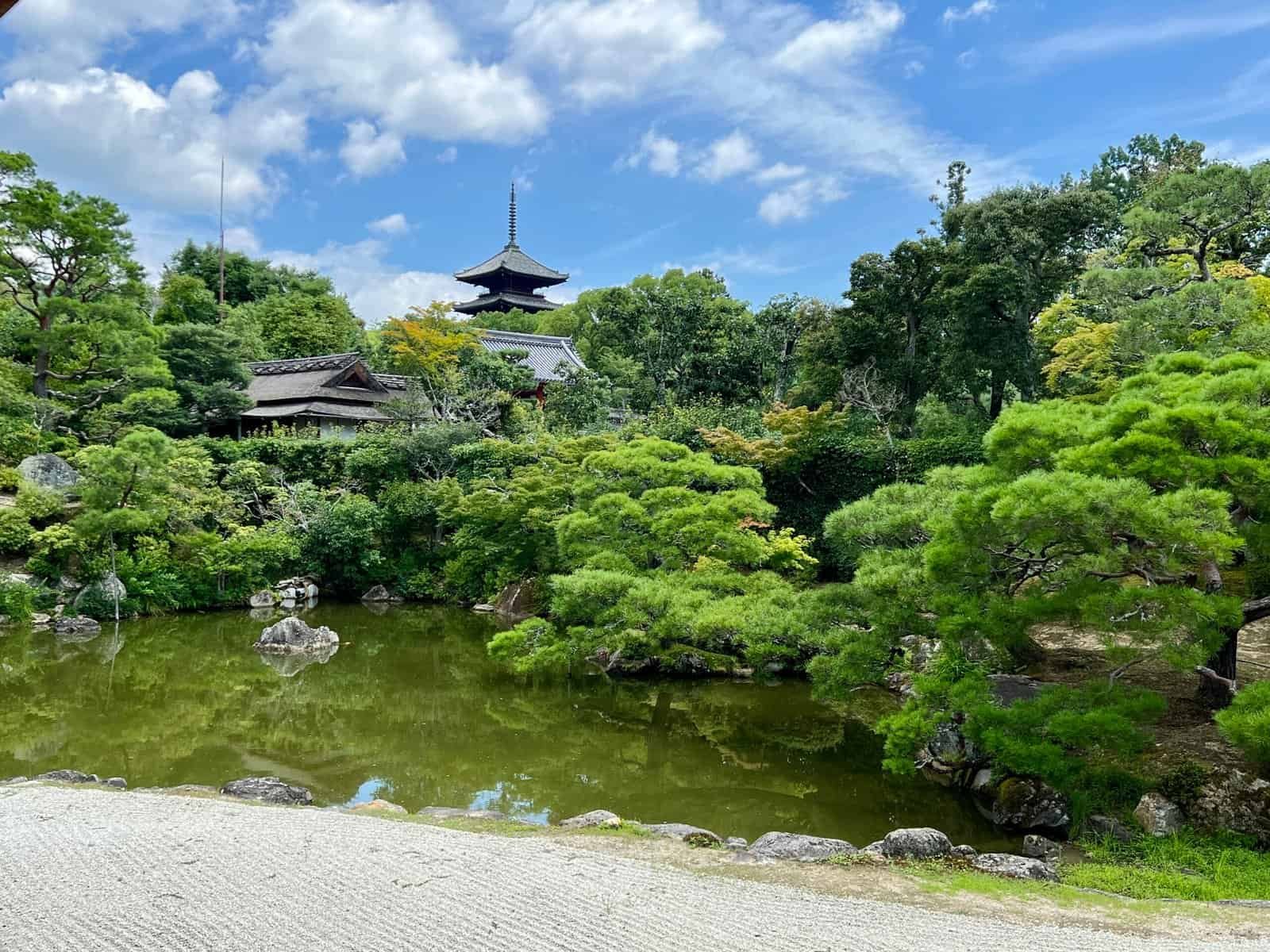 Et pourtant, tout est magnifique : pagode à cinq étages, jardin zen, bâtiments en bois brun et blancs, ambiance paisible. Une vraie pépite.