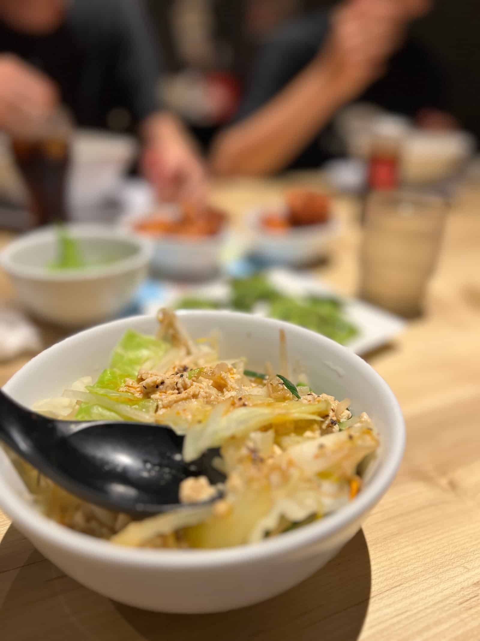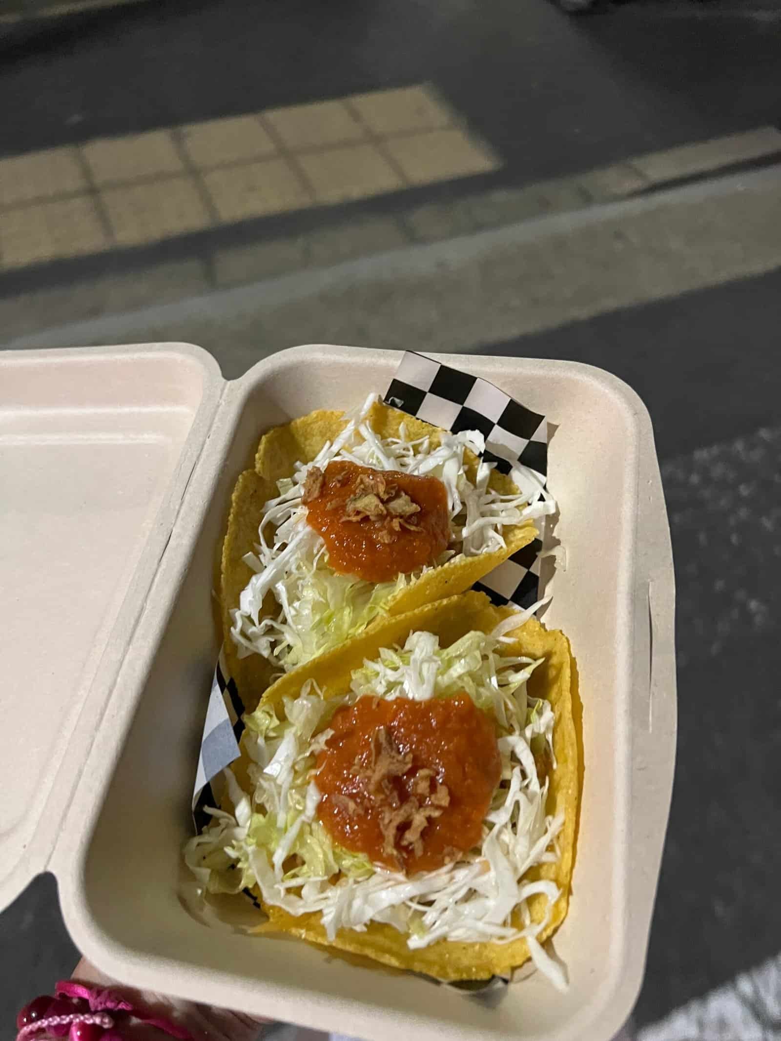 On est tombé sur un tout petit restaurant de gyozas traditionnels. Après avoir attendu au moins 30 minutes, on s’assoit et je me rends compte qu’il n’y a rien de végé. Les garçons ont bien envie de les goûter alors je les laisse pour l’autre côté de la rue où j’avais repéré des tacos végé. Trop bons. Tout le monde était contents.