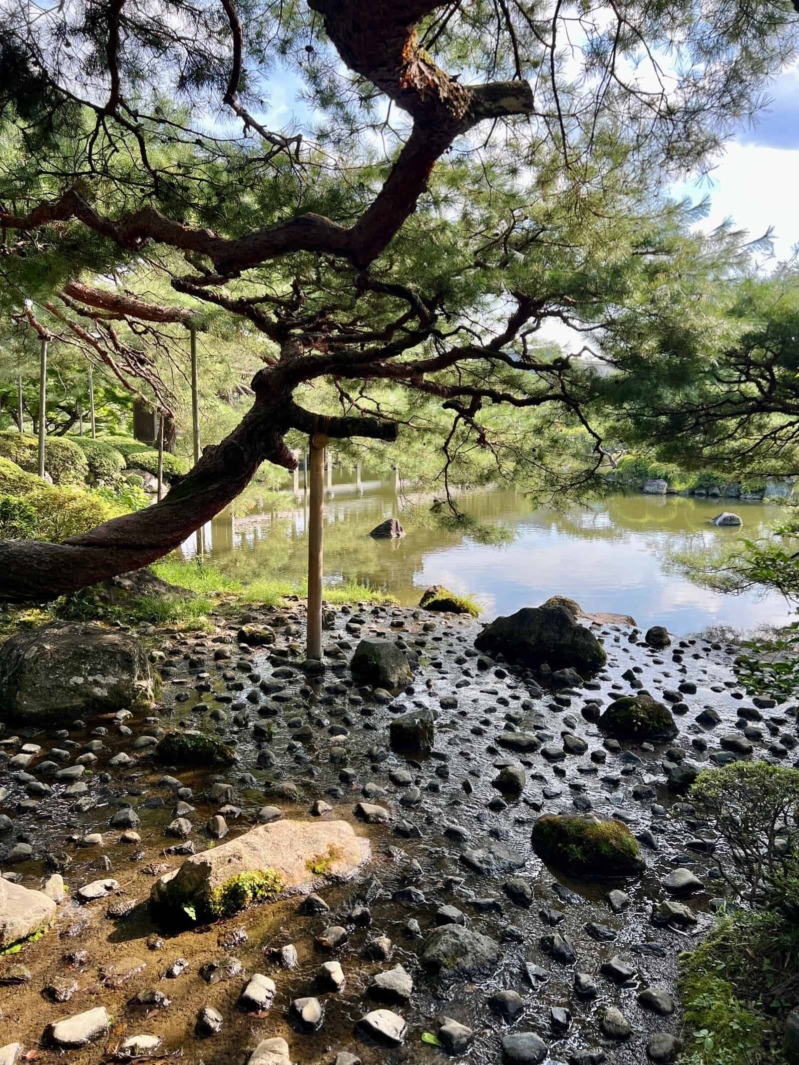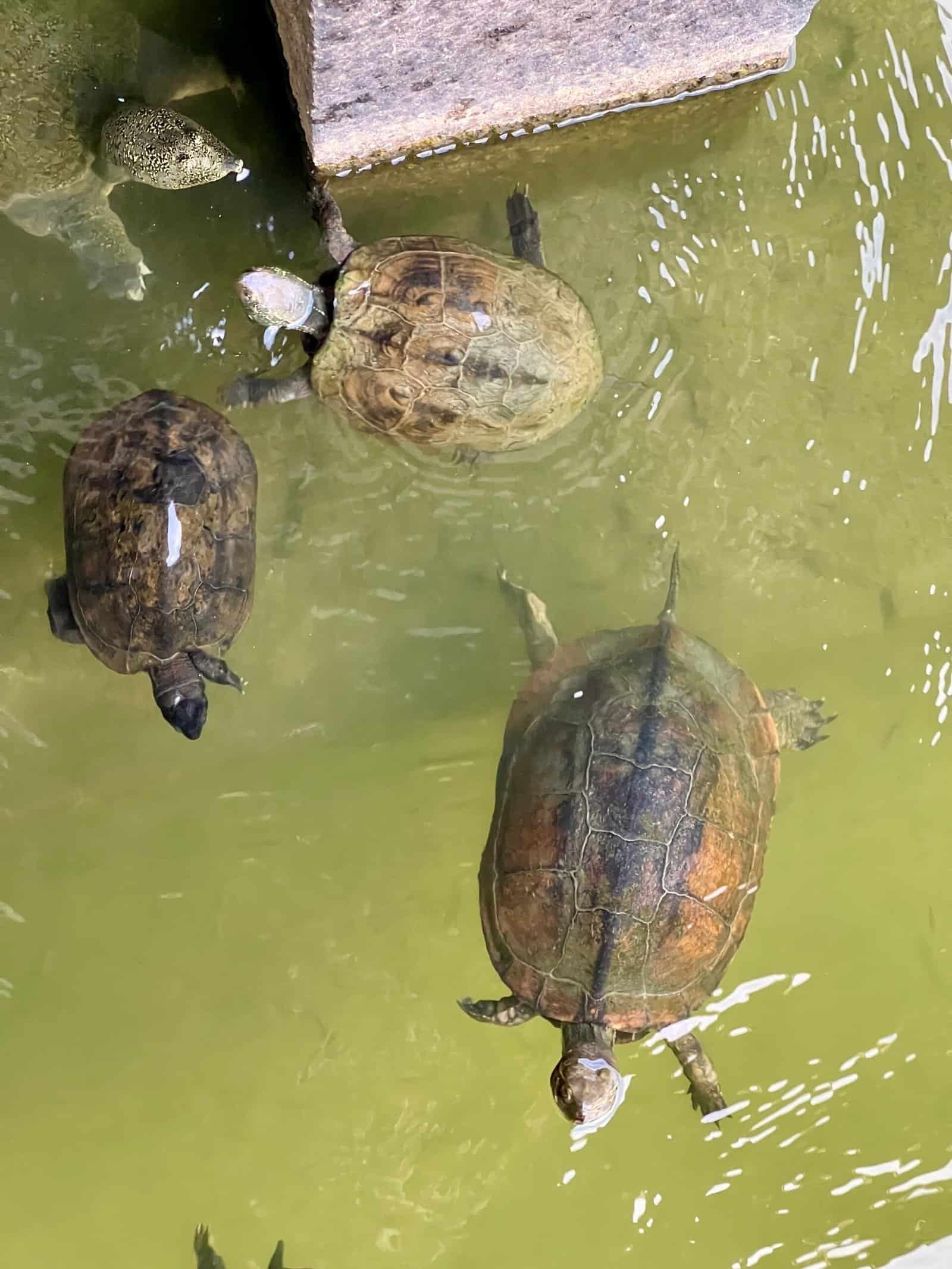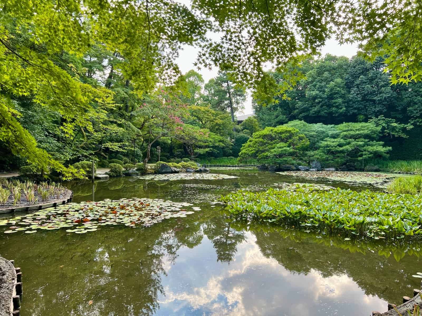 Le jardin du sanctuaire, accessible via un ticket séparé, est somptueux. On y retrouve trois plans d’eau – petit, moyen, grand – entourés de pins, de ponts, de pierres. Tout semble naturel… mais tout a été pensé pour évoquer la beauté sans l’imposer. Enfin à part les tortues.