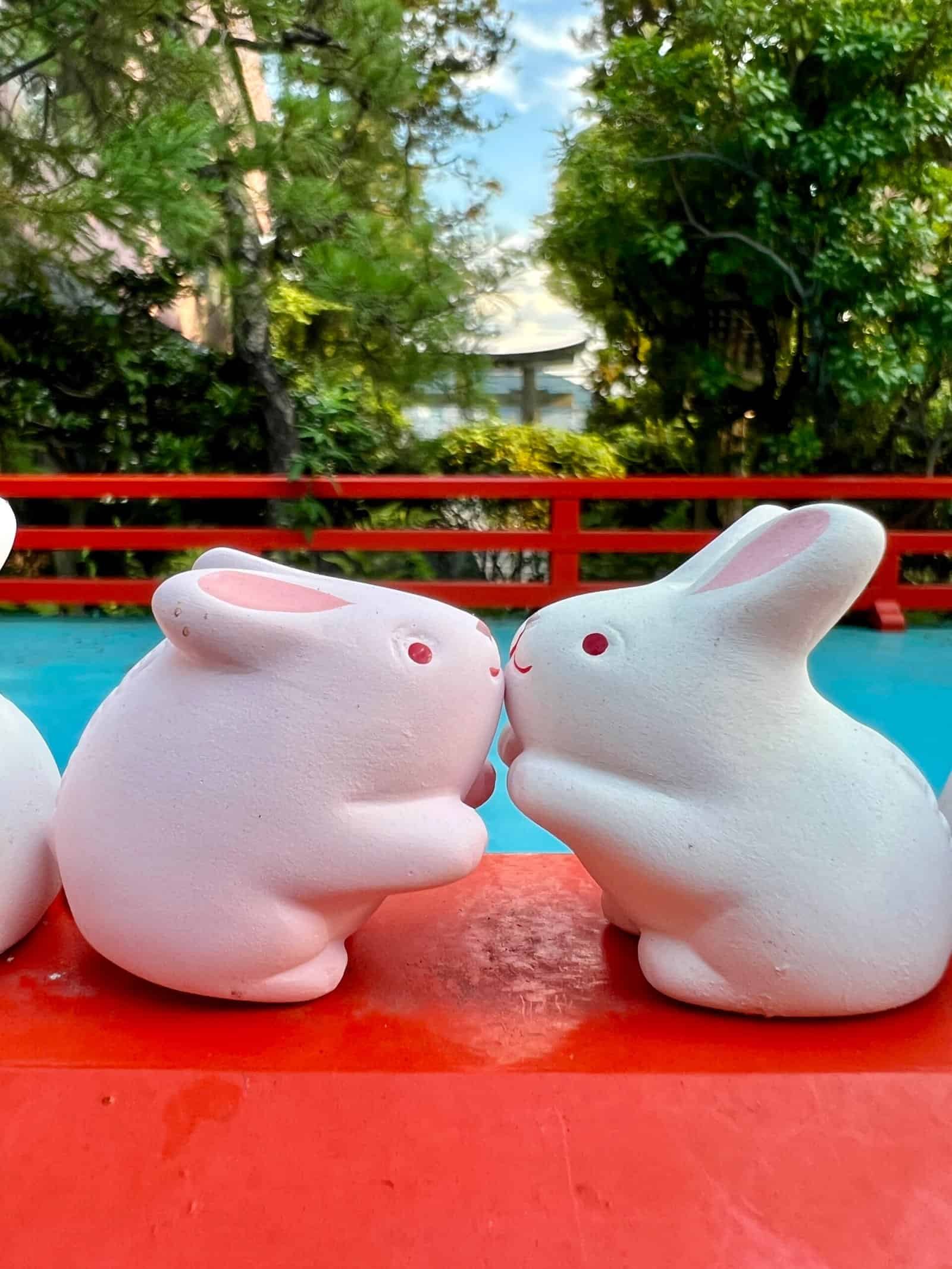À quelques minutes de là, nous visitons le sanctuaire Okazaki-jinja, connu pour ses statues de lapins, symboles de fertilité. En 2023, année du lapin, c’était la foule. Mais pas de queue cette fois.