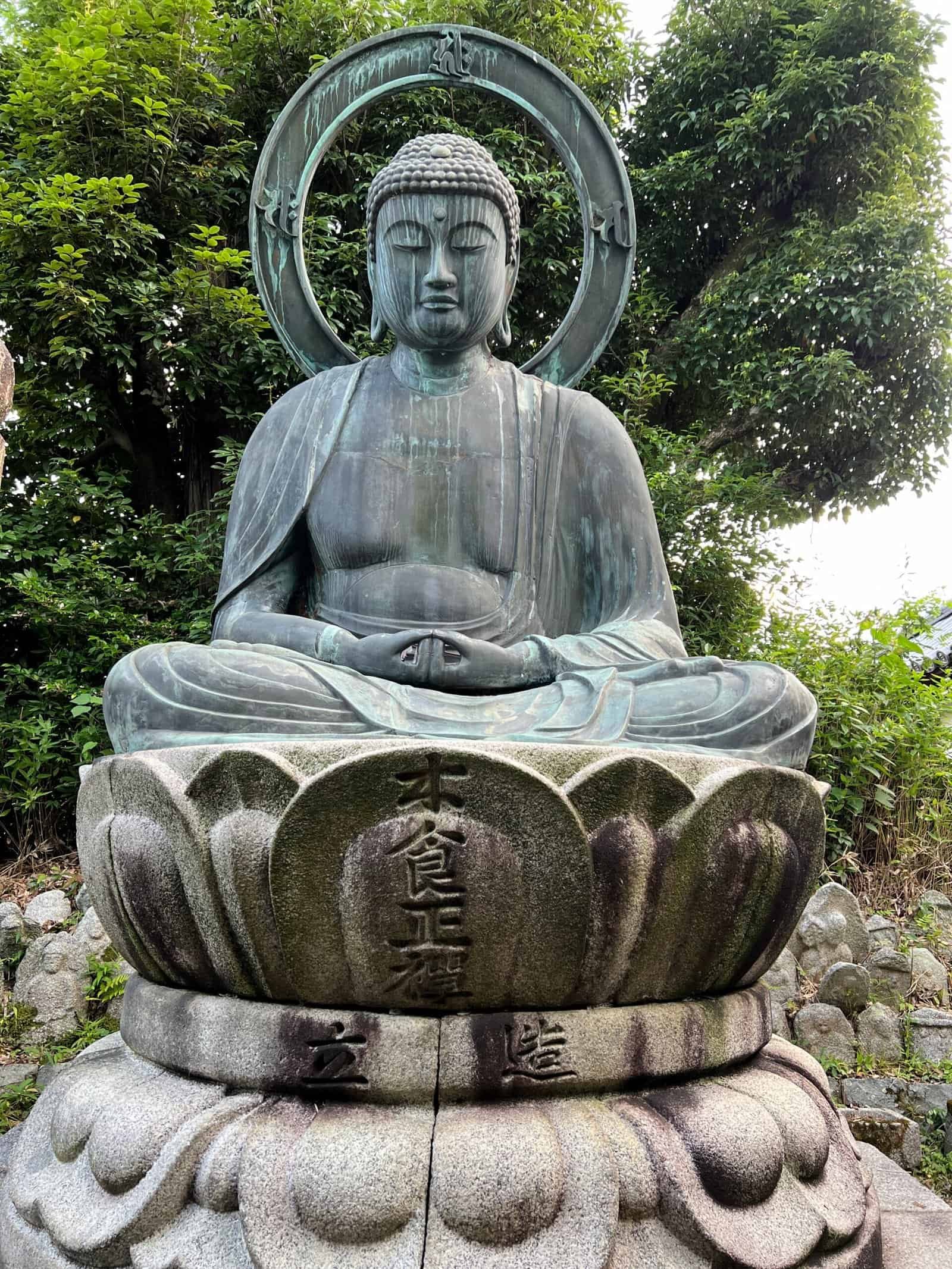 Après le cimetière, Clément nous guide dans un petit temple isolé, accroché à la pente d’une colline, qu’il faut mériter : on grimpe de longues marches, et là, au calme, à l’ombre des arbres, on découvre une série de statues de Jizō.