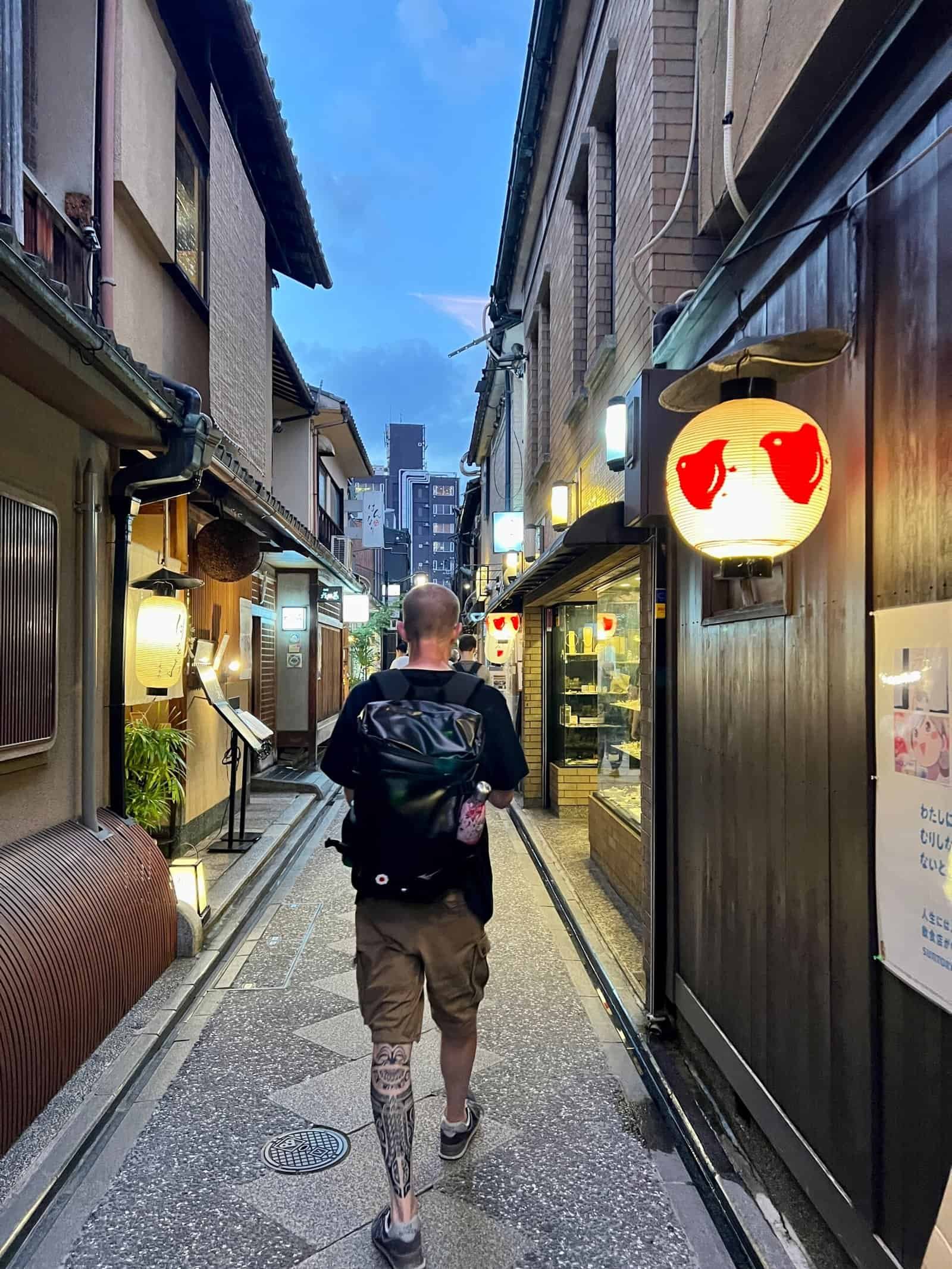 Direction le quartier de Gion, et plus précisément Pontocho Alley, une ruelle étroite pleine de restaurants.