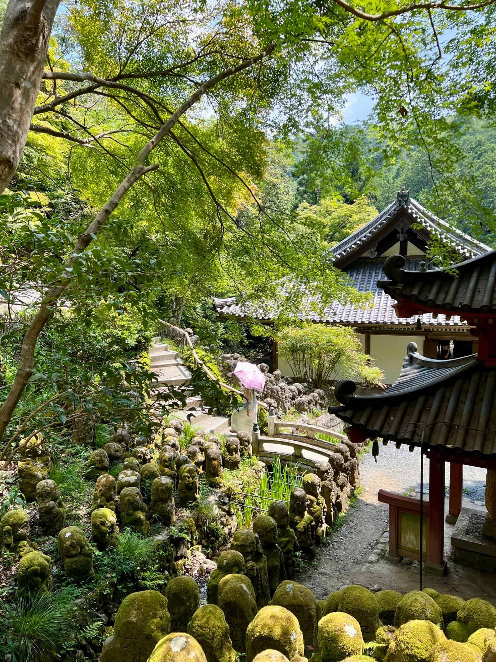 Retour à l’ouest de Kyoto pour découvrir le temple Otagi Nenbutsu-ji. Ce temple bouddhique est peu connu, mais unique : on y trouve plus de 1 200 statues de rakans, les disciples du Bouddha.