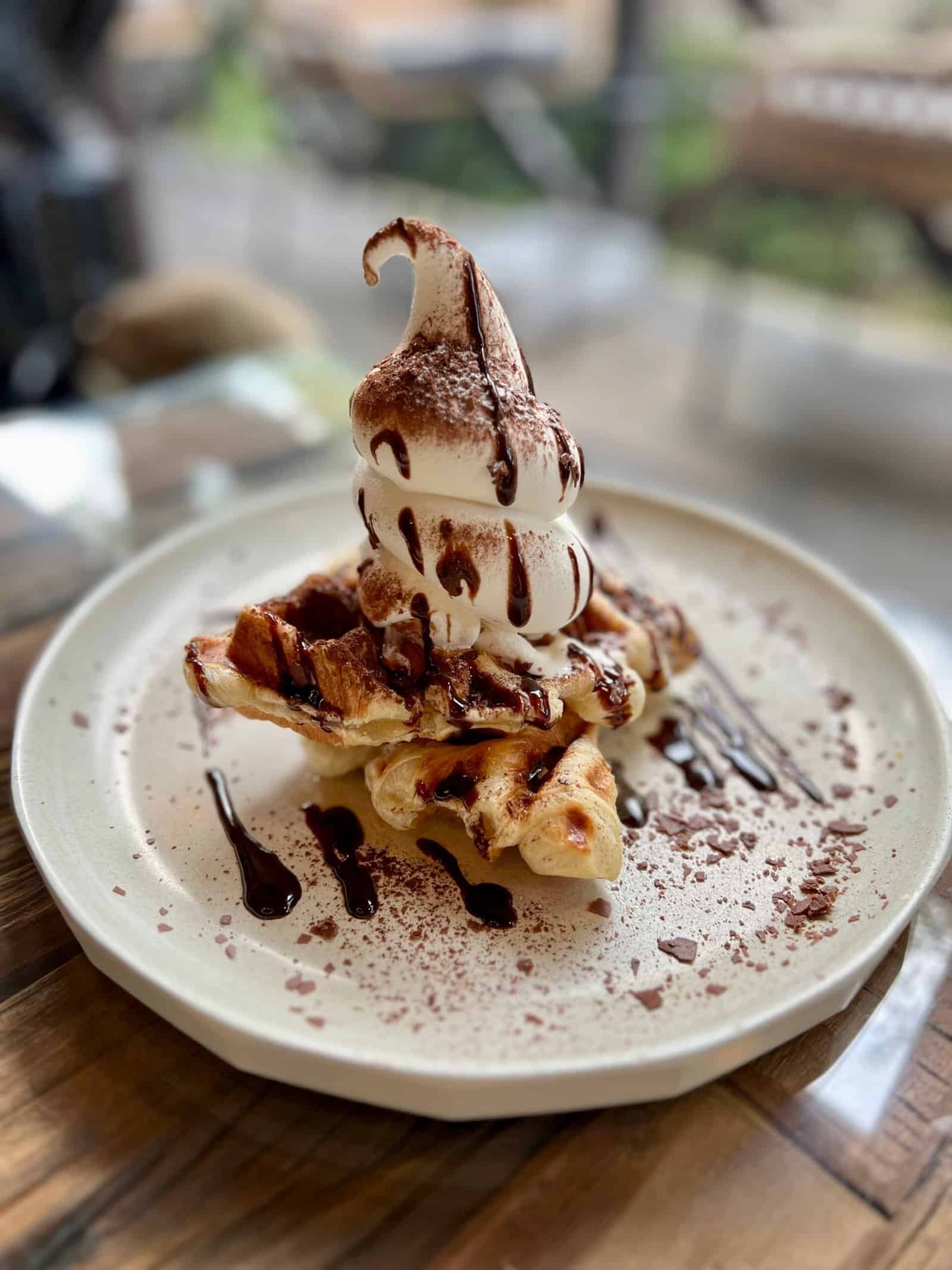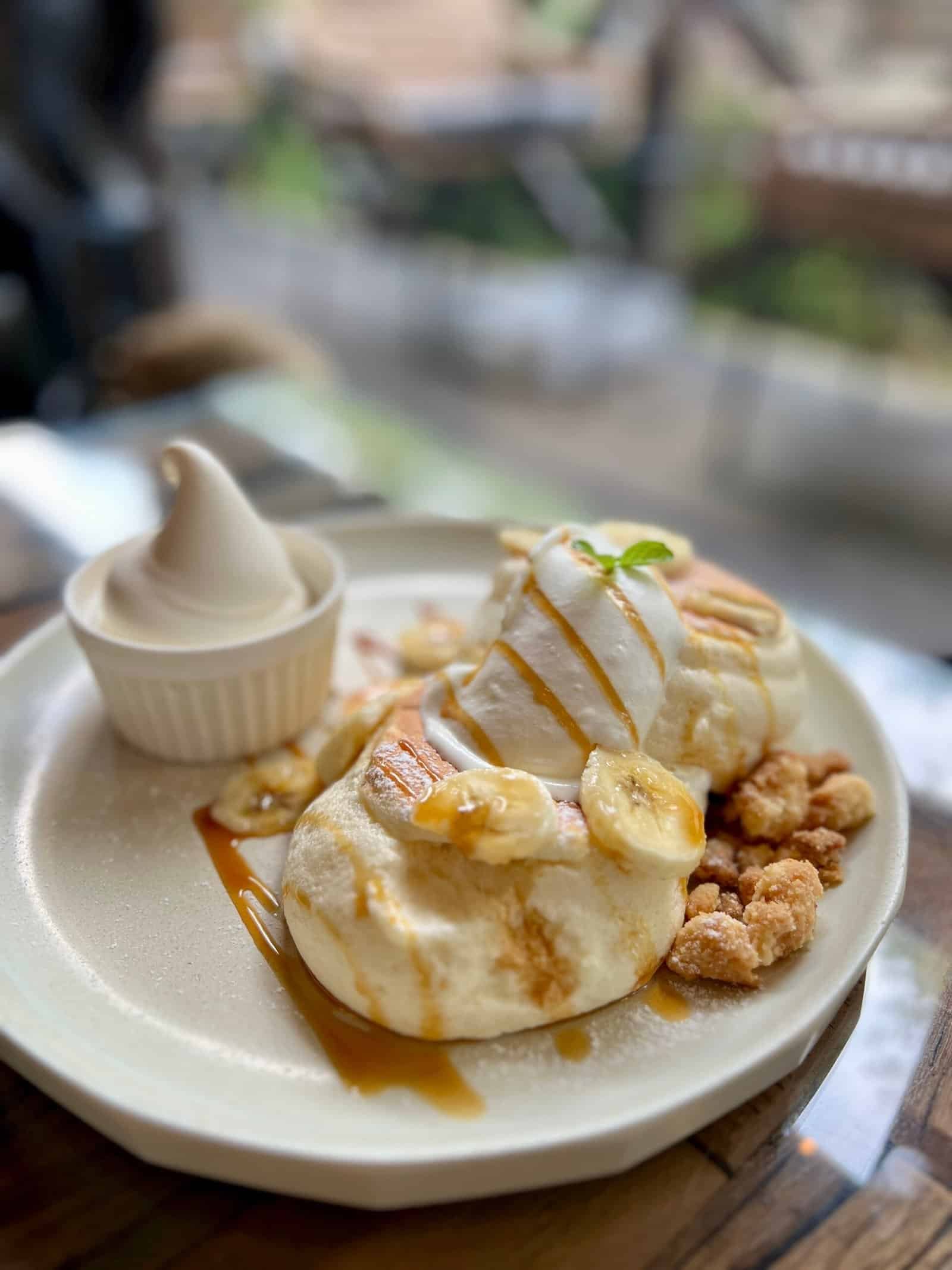 Pause sucrée à Panel Café, dans Gion. Les garçons enchaînent burger puis croffles, le 14 ans et moi optons pour des pancakes fluffy. Gourmandise assumée.