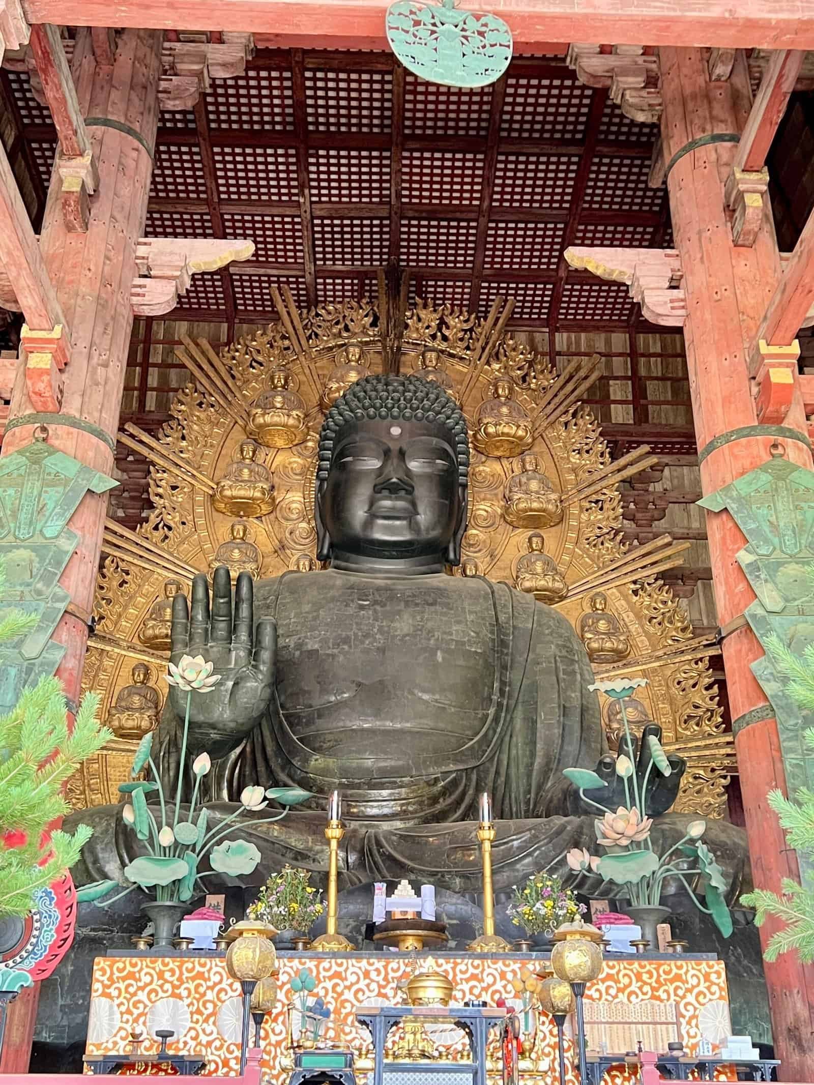 Le Todai-ji est un temple bouddhique monumental, fondé en 752. Il abrite le plus grand Bouddha en bronze du Japon (15 mètres !). Le bâtiment lui-même est l’un des plus grands édifices en bois du monde. Impressionnant.