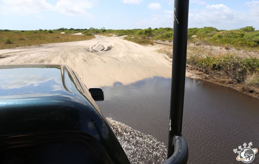 Nous grimpons – littéralement – dans le 4×4 et prenons la direction du Parc. Pour cela, il faut passer la rivière Preguiças qui sépare les Lençois en 2 parties, le Grand vers lequel nous nous dirigeons, et le Petit que nous verrons demain.