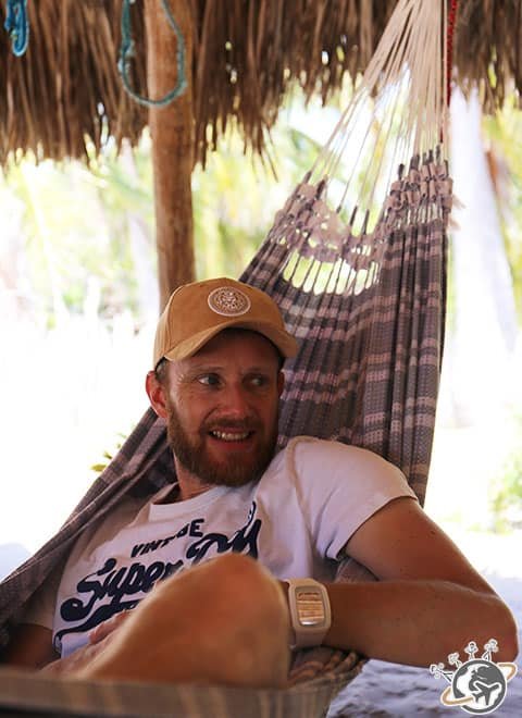 J’ai dégainé mon plus beau tube de Génie Sans Frotter pour l’activité la plus fun de la journée : je lave dans le lavabo, je rince dans la douche, j’essore le plus possible, je mets sur un cintre et hop sur le hamac devant notre porte qui fait une parfaite corde à linges.