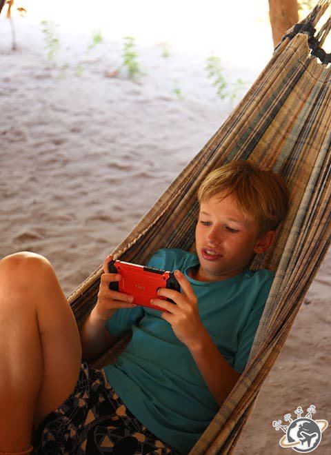 Le soir, les Nains profitent des jeux à disposition, Népoux de sa caïpirinha locale et moi du hamac… Pas besoin de chercher ce que nous ferons le lendemain, tout a été organisé par Joël de Bresil Découverte. C’est un gain de temps non négligeable et une tranquillité d’esprit qui permet de profiter vraiment de ses vacances.