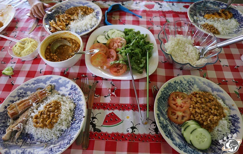 Nous repartons sur les pistes pour le restaurant Dona Graça, à 10 minutes de là, au milieu de nulle part. T’as pas intérêt à oublier quelque chose quand tu vas faire les courses 😯 .
