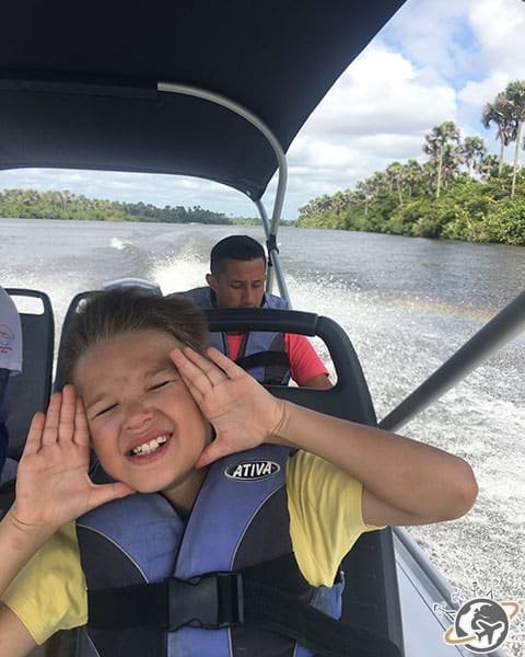 Nous embarquons sur notre « voadeira » (canot hors-bord) familiale pour une belle balade sur le fleuve.