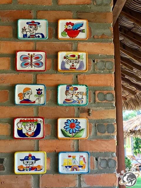 Nous sommes accueillis par une très jolie collection de coqs. Je les préfère aux vrais car ceux-là ne nous réveillent pas le matin 😀 .