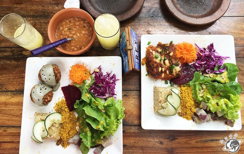 Pour le déjeuner, pas besoin d’aller bien loin : il y a un tout petit restaurant végétarien à côté de l’hôtel. Quel bonheur de manger autre chose que du riz, des beans et des carottes rapées. C’est tellement bon que même Népoux et les Nains ont adoré.