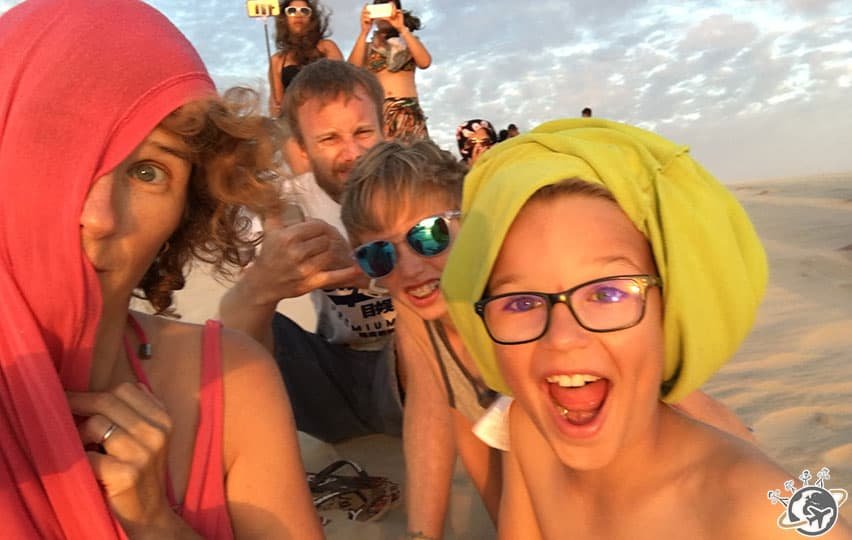 Après avoir été seuls au monde pendant une semaine, j’ai aimé me balader dans les rues de sable, regarder les vitrines, choisir de manger autre chose que du riz et des beans. Les enfants ont aimé la piscine, jouer au foot sur le sable, faire du buggy.. Le retour à la civilation s’est donc fait en douceur.
