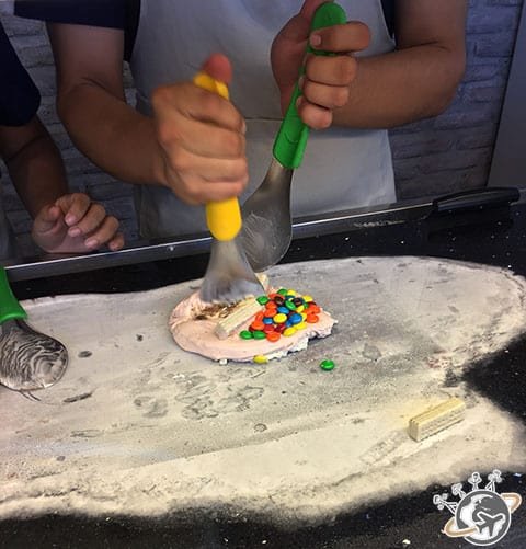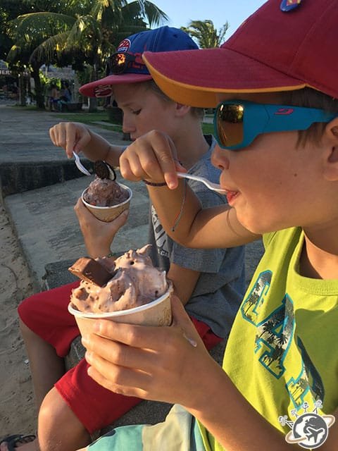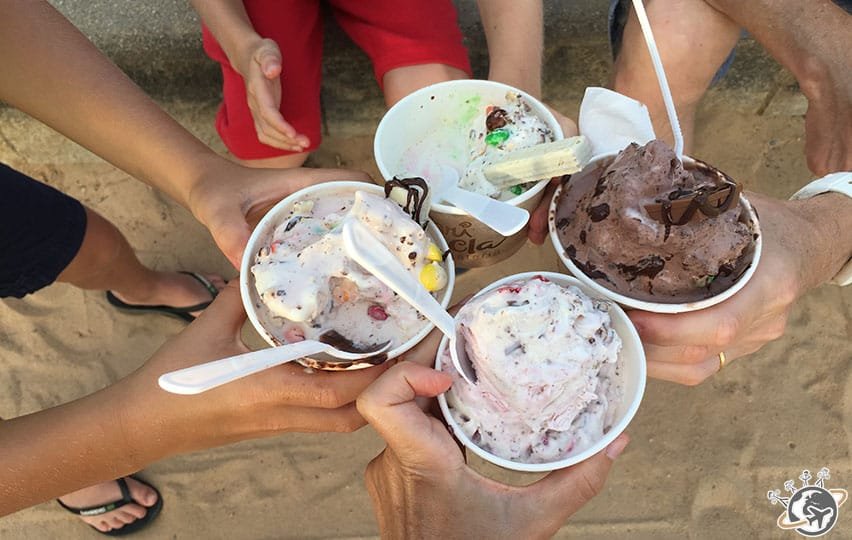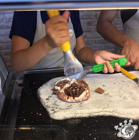 Pour le goûter, nous avons découvert Jeri Mescla, un super glacier sur la place principale. On choisit son ou ses parfums et son ou ses toppings (kit kat, toblerone, oreo, fruits…), ils mélangent le tout et hop au moins 8 000 calories à la cuillère mais c’est un kif total 😀 .