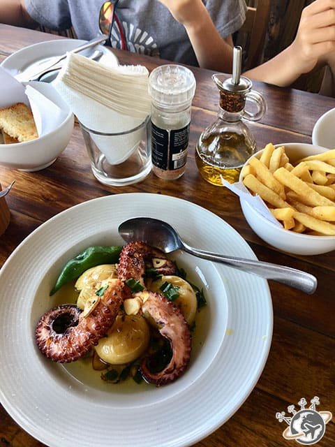 La carte est plus élaborée que dans les restaurants précédents : Népoux et les Nains ont pris de la pieuvre, un bon poisson et les désormais incontournables patatas fritas.