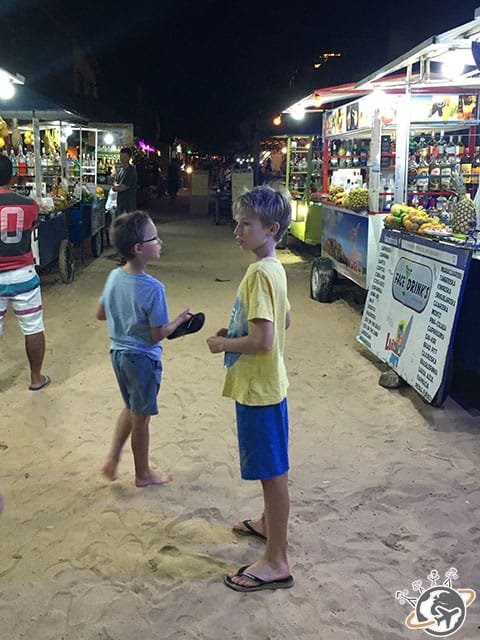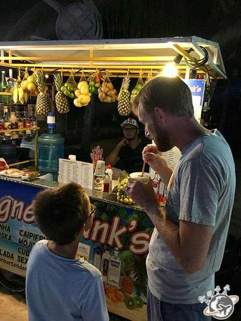Une fois le soleil couché, de nombreux vendeurs ambulants s’alignent en 2 rangées, prêts à préparer toutes les boissons avec ou sans alcool. On choisit au hasard, un jeune homme souriant (en vrai il l’était, j’vous jure).