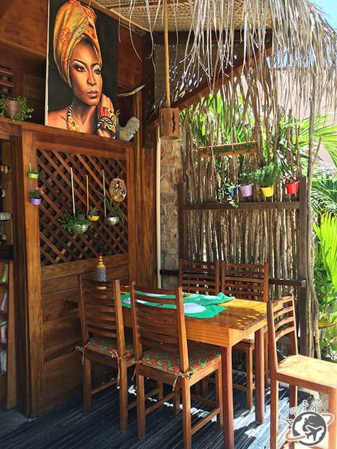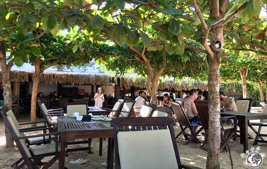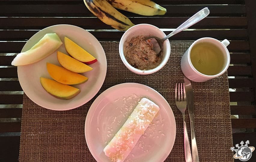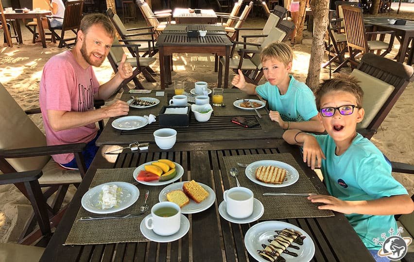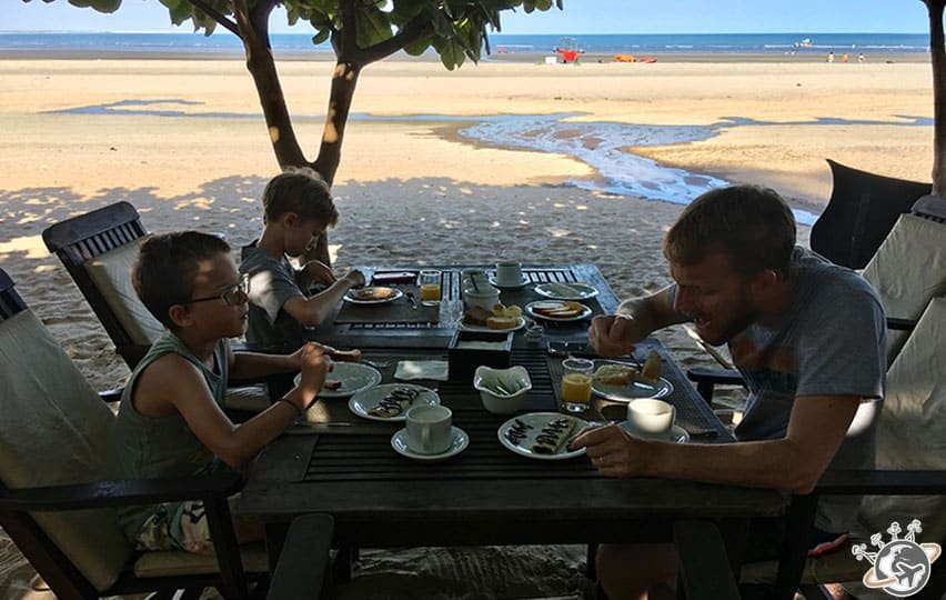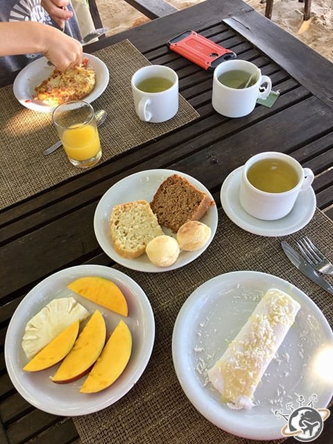 On commence par un petit-déjeuner les pieds dans le sable (comme partout à Jeri).