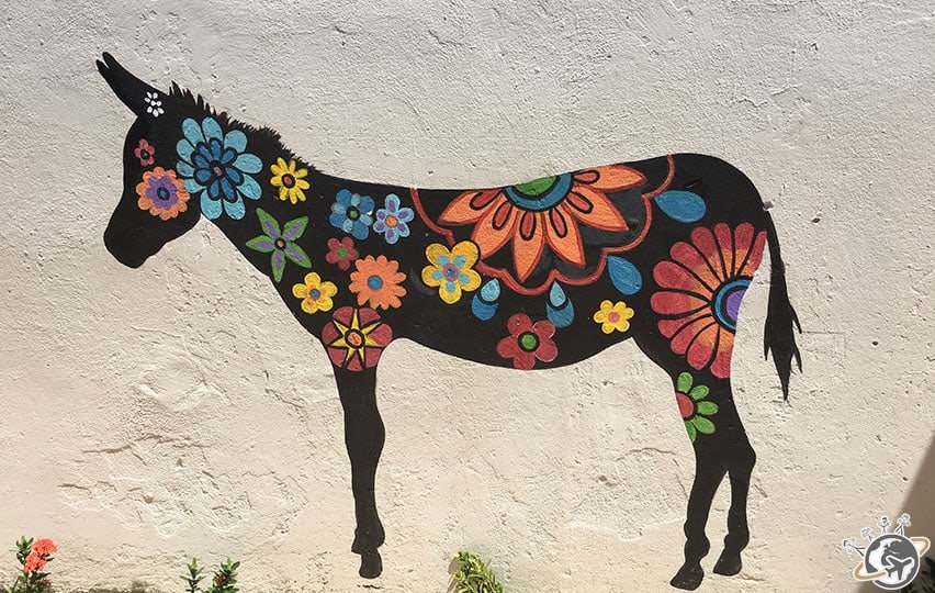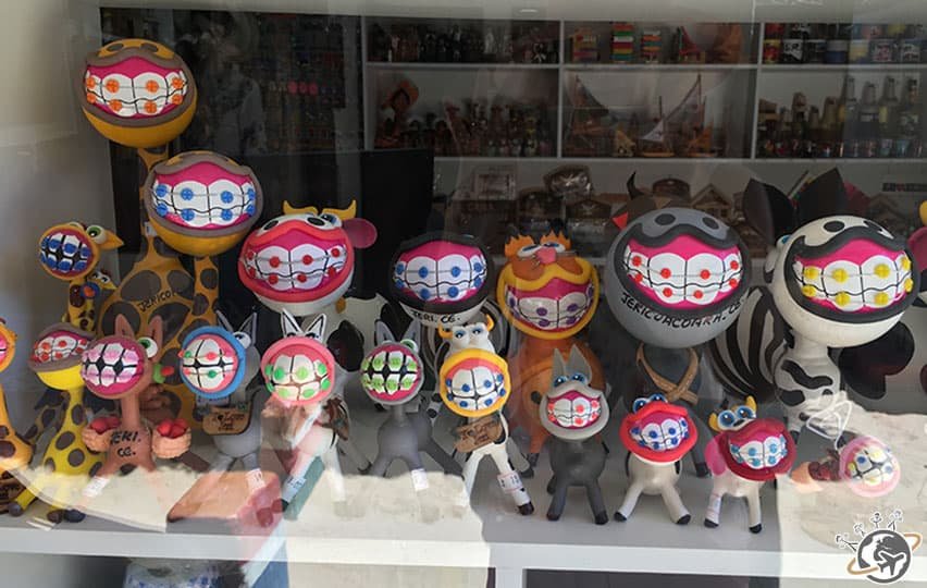 Notre chambre n’étant pas prête puisque nous sommes arrivés en avance, nous partons explorer la « ville ». Il n’y a pas grand monde dans les ruelles, les gens sont à la plage ou sur l’eau, nous nous baladons donc tranquillement, les pieds dans le sable. Même si toutes les boutiques ne sont pas ouvertes, j’apprécie de regarder les vitrines, d’entrer dans certaines, et de découvrir des vaches avec des appareils dentaires ! Petit Nain aurait préféré rester à la piscine et il nous le fait savoir 🙂