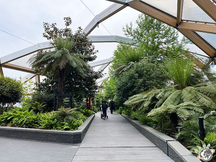 Londres ne manque pas d’endroits végétalisés, donc après ma session street art, je me suis fait un shoot de vert au Crossrail Place Roof Garden à Canary Wharf.
