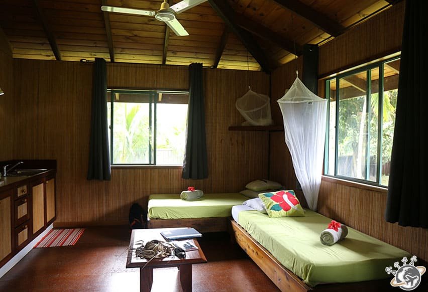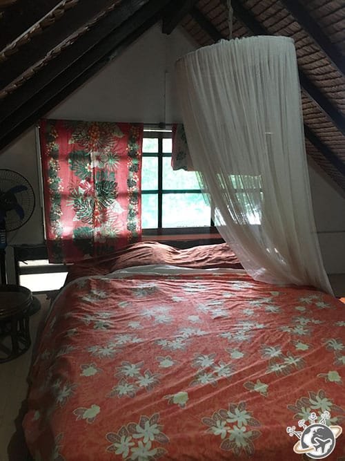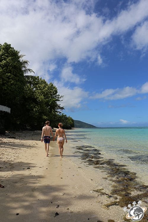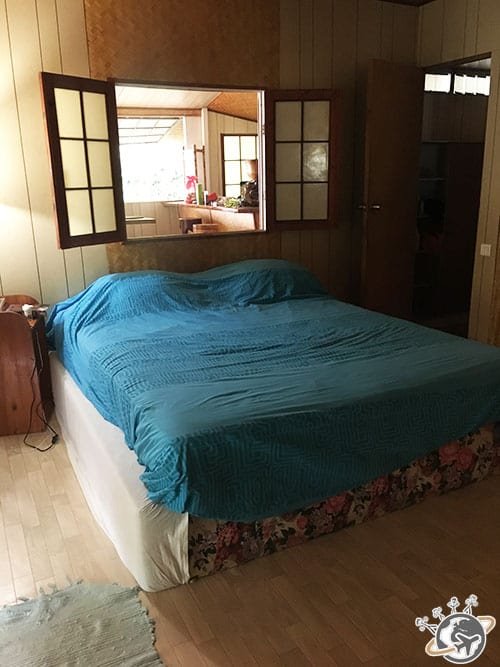 Situé à Nu’urua, au sud-ouest de l’île, Fare Edith est un ensemble de plusieurs fares, les habitations polynésiennes traditionnelles. Je tenais à passer quelques jours dans ce type d’hébergement pour être comme à la maison : petits déjeuners et diners dans la salle à manger avec grandes ouvertures sur le lagon, cuisine très très bien équipée, des chambres séparées… ce qui fait du bien après une semaine en chambre familiale 😉