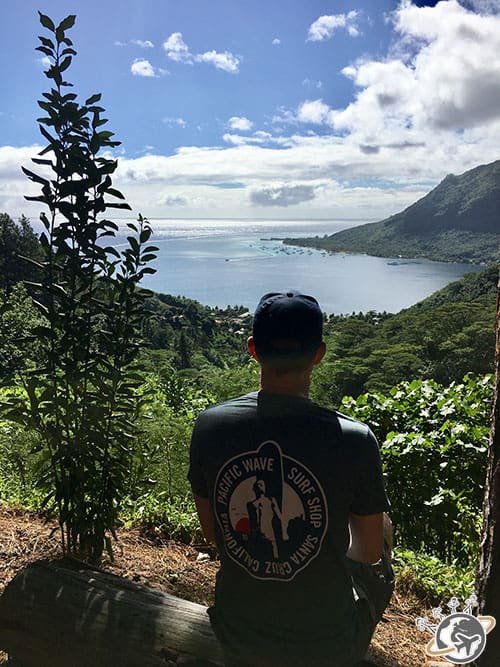 Puis direction le Belvédère d’où la vue est imprenable sur le mont Rotui et les baies d’Ōpūnohu (à gauche) et de Cook (à droite).