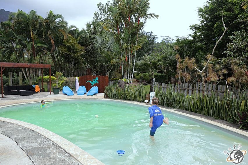 Situé dans la baie de Cook, le Kaveka est le plus vieil hôtel de Moorea, dans le bon sens du terme. Les bungalows sont grands et confortables et la vue sur la baie est imprenable. Les Nains ont passé beaucoup de temps à sauter du grand ponton où se situe le restaurant et moi à faire du yoga face à la mer.