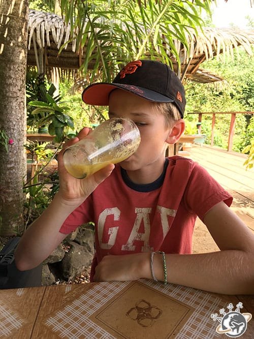 - Snack Didier (Paopao) : nous nous sommes arrêtés un midi, un peu par hasard et c’était très bien. Népoux et les Nains ont pris des burgers – en mode touristes – et moi un poisson cru au lait de coco (oui encore, j’ai fait une étude très poussée sur le sujet 😀 Et oui, j’ai fait une entorse à mon régime végétarien mais le poisson fait partie de la culture locale et très frais).