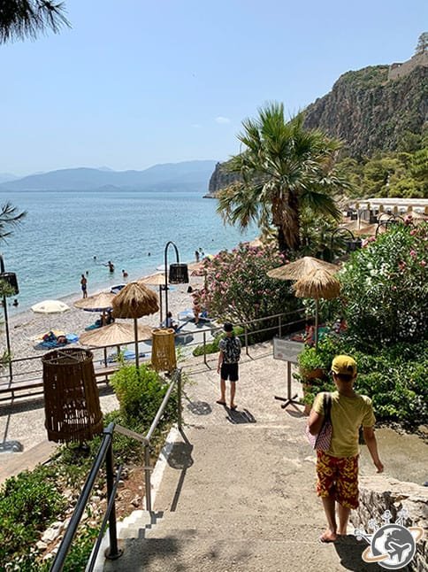 Du haut de la citadelle Palamède, vous avez vu que la vue est imprenable sur le golfe Argolique. On aperçoit aussi de jolies plages. Et quand il fait aussi chaud, l’appel est irrésistible.